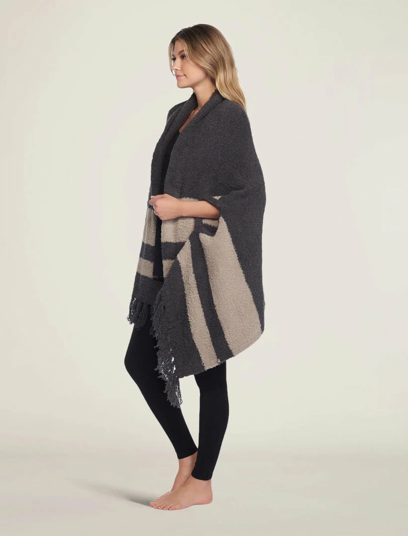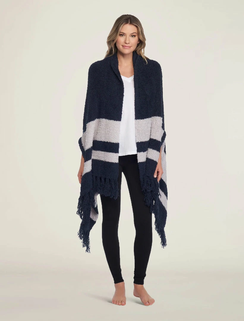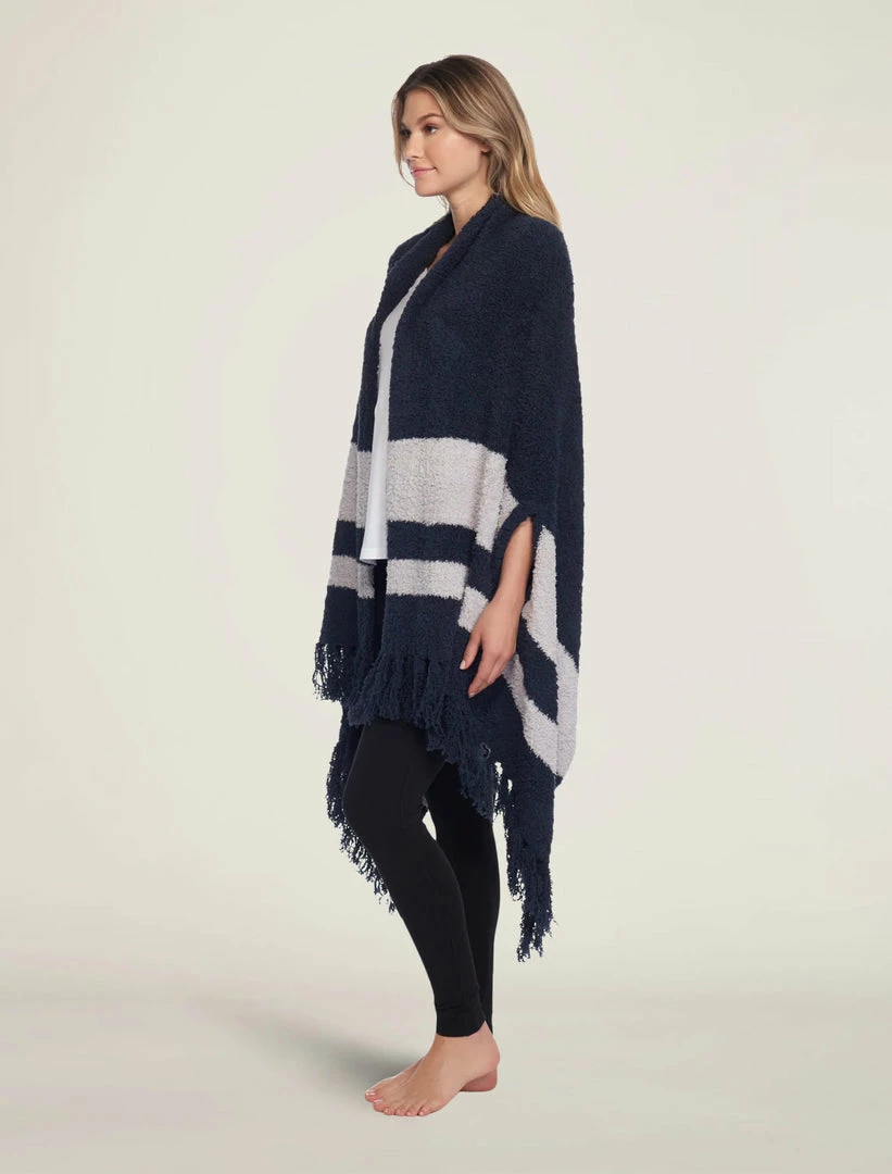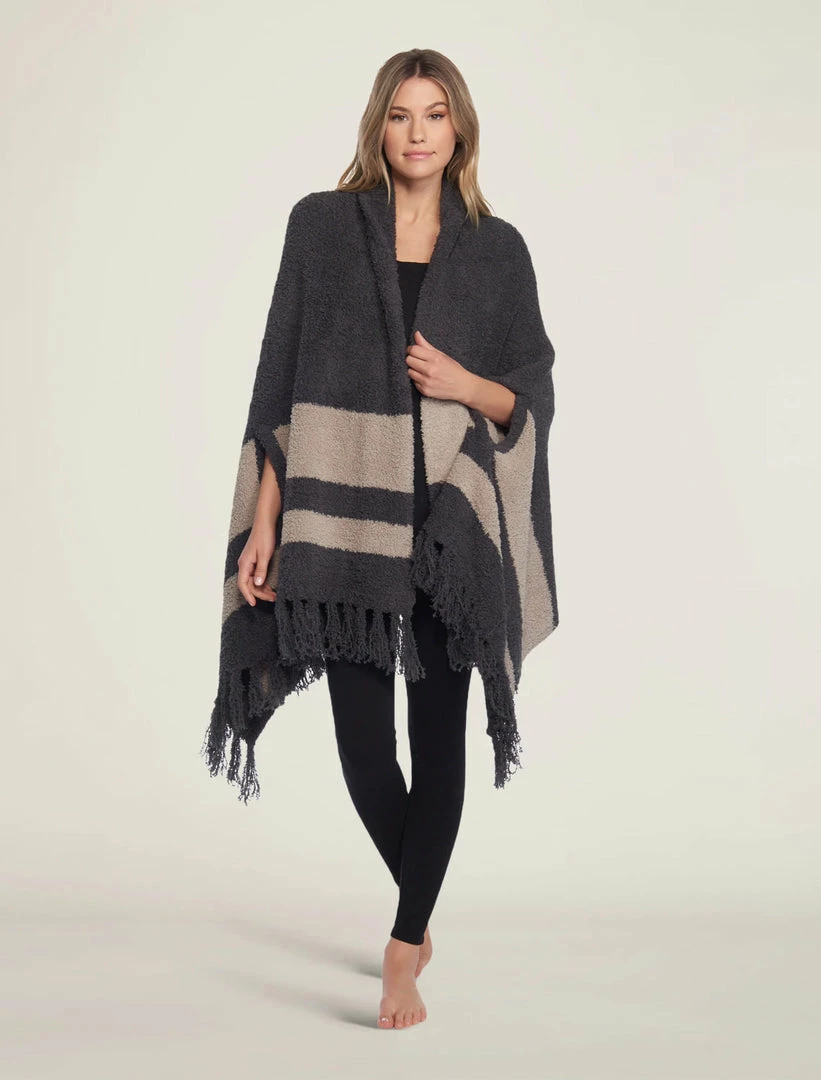 We named this stunning wrap after our home base of Malibu. We love the fringe, the convenient arm holes, and the striking coastal stripes. It also features a rolled-over neck line to keep you surrounded in coziness. A brand favorite!