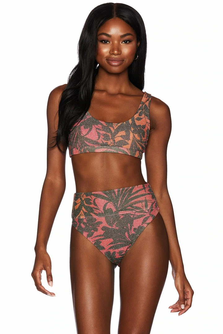 The Peyton Top is our scoop-neck swim top now in our new sparkly sunset hibiscus shine printed fabric. Pair with the Highway Bottom or Vanessa Bottom in Hibiscus Shine to complete this must have set.**Colors may vary. Each piece is unique**