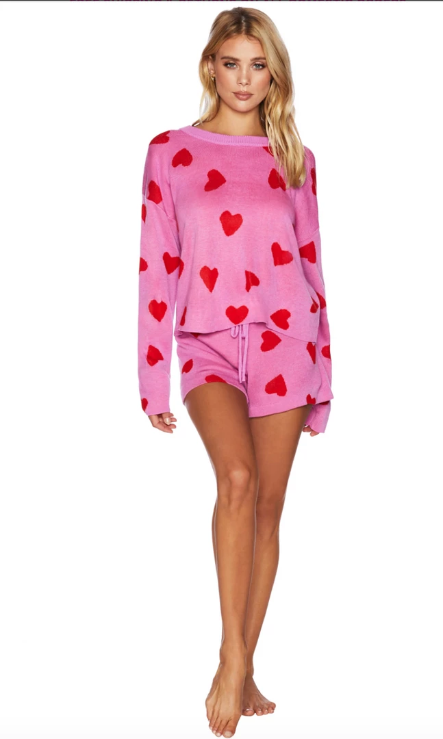 The Balboa Short is our ultra soft lightweight lounge short. These bubble gum pink shorts have red hearts printed all over and feature a drawstring waistband. They are the perfect piece to throw on for a beach cover up or cozy lounge look. Pair these shorts with the Beach Sweater in Valentine Heart for a head-to-toe lounge look.