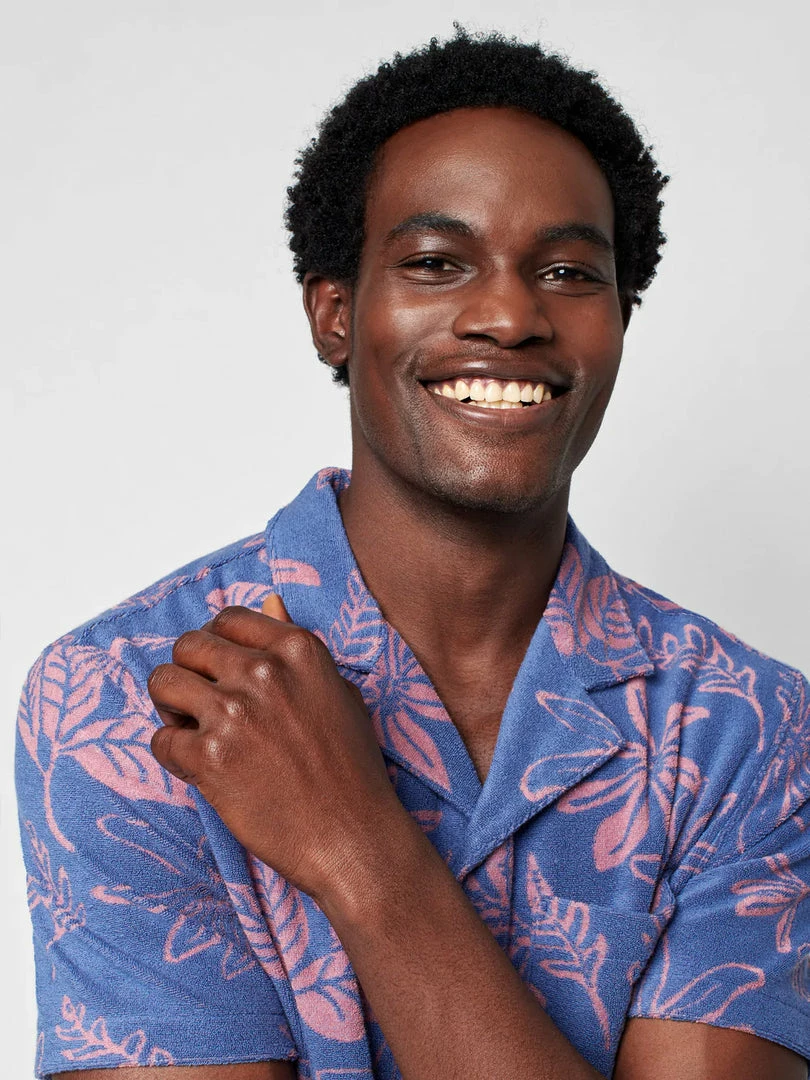 A true statement piece inspired by old-school seaside loungewear, we knit this towel terry fabric in a custom floral motif. We love it for its off-duty vibes, perfect for poolside chilling or any summer day in the sun.