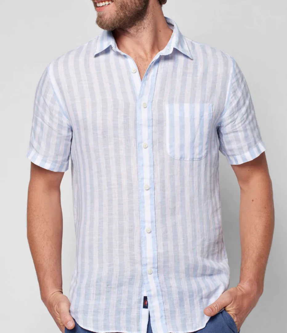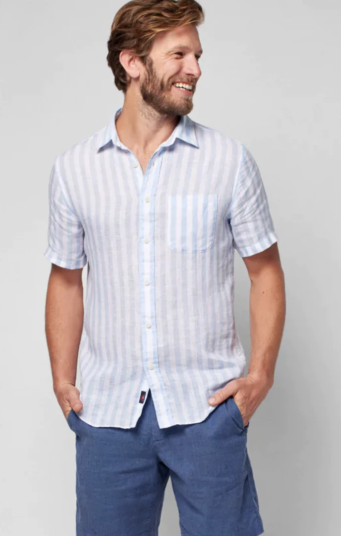 Linen is known for its sustainability, breathability and durability. In this classic coastal stripe, you’ll look sharp for everything from work to date nights while keeping naturally cool.