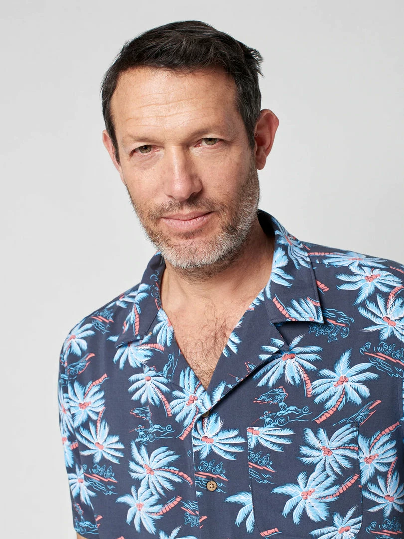 - Detail: Camp collar, Turnback placket, Chest pocket.