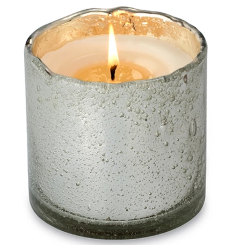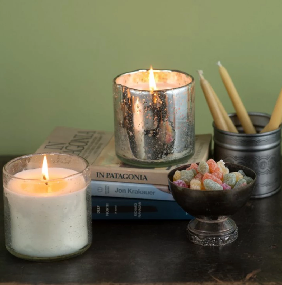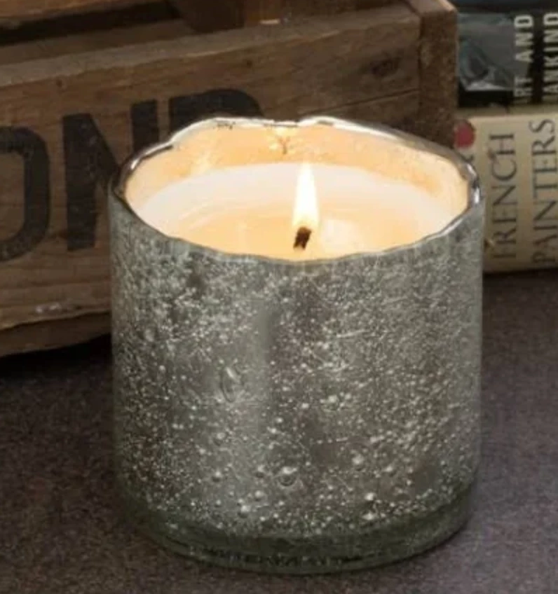 Clean burning soy wax in decorative bubble glass vessel that can be repurposed once wax is melted. Handmade in the USA in small batches.