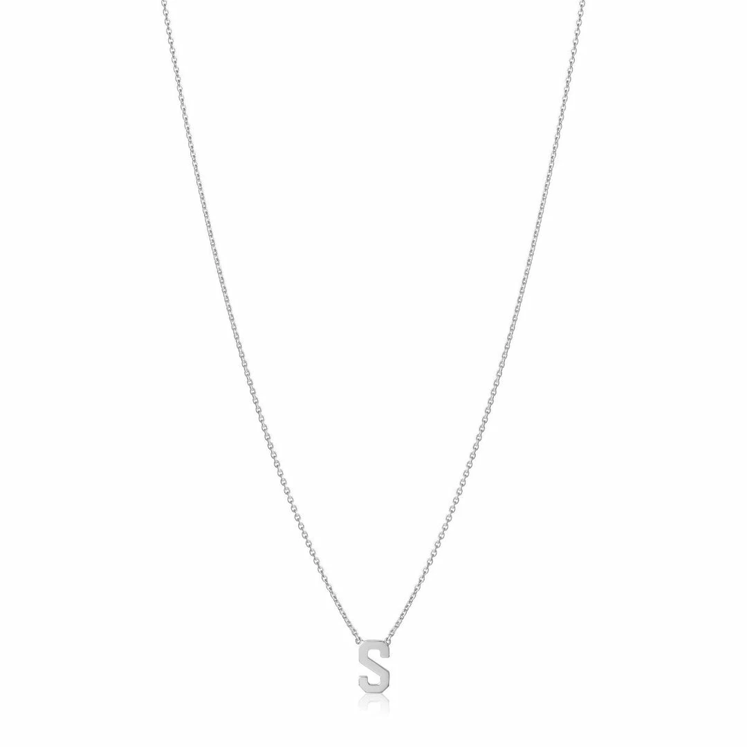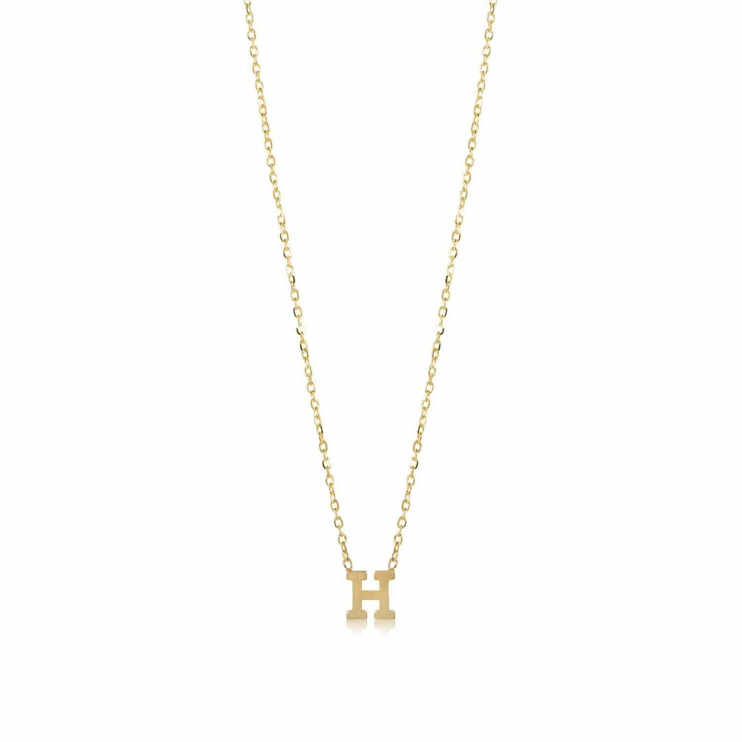 Solid 14k gold letter. Classic cable chain. Faces front.