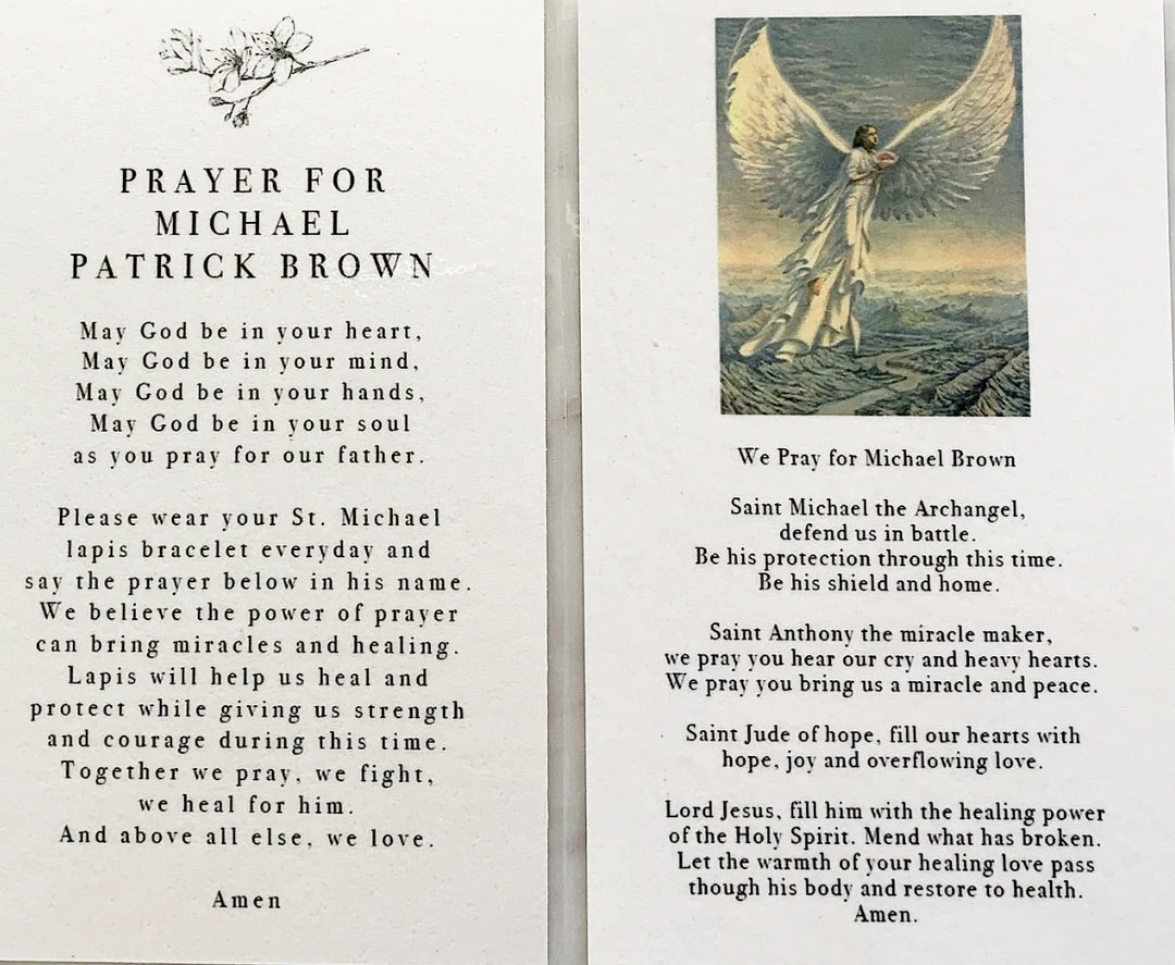 May God be in your heart. May god be in your mind. May God be in your hands. May God be in your soul as you pray for our father. Please wear your St. Michael lapis bracelet everyday and say the prayer below in his name. We believe the power of prayer can bring healing. Lapis will help us heal and protect while giving us strength and courage during this time. Together we pray, we fight, we heal for him.