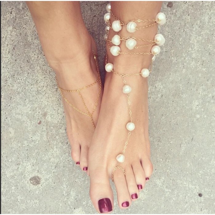 - Hand woven fresh water pearl wrap sleeve bracelet or anklet