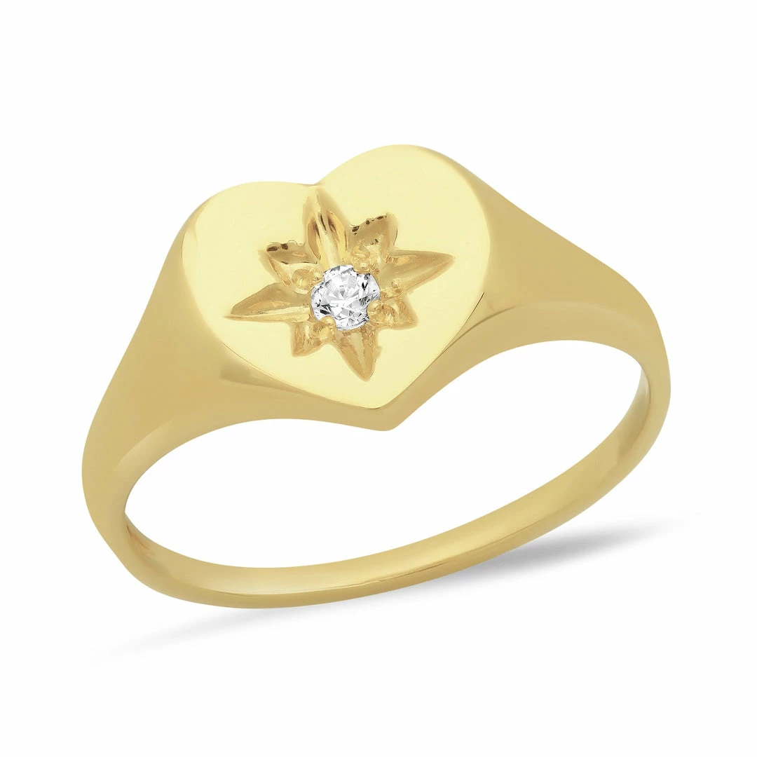 A sweetheart starburst ring. Perfect ring for layering. JNB favorite as a pinky ring.