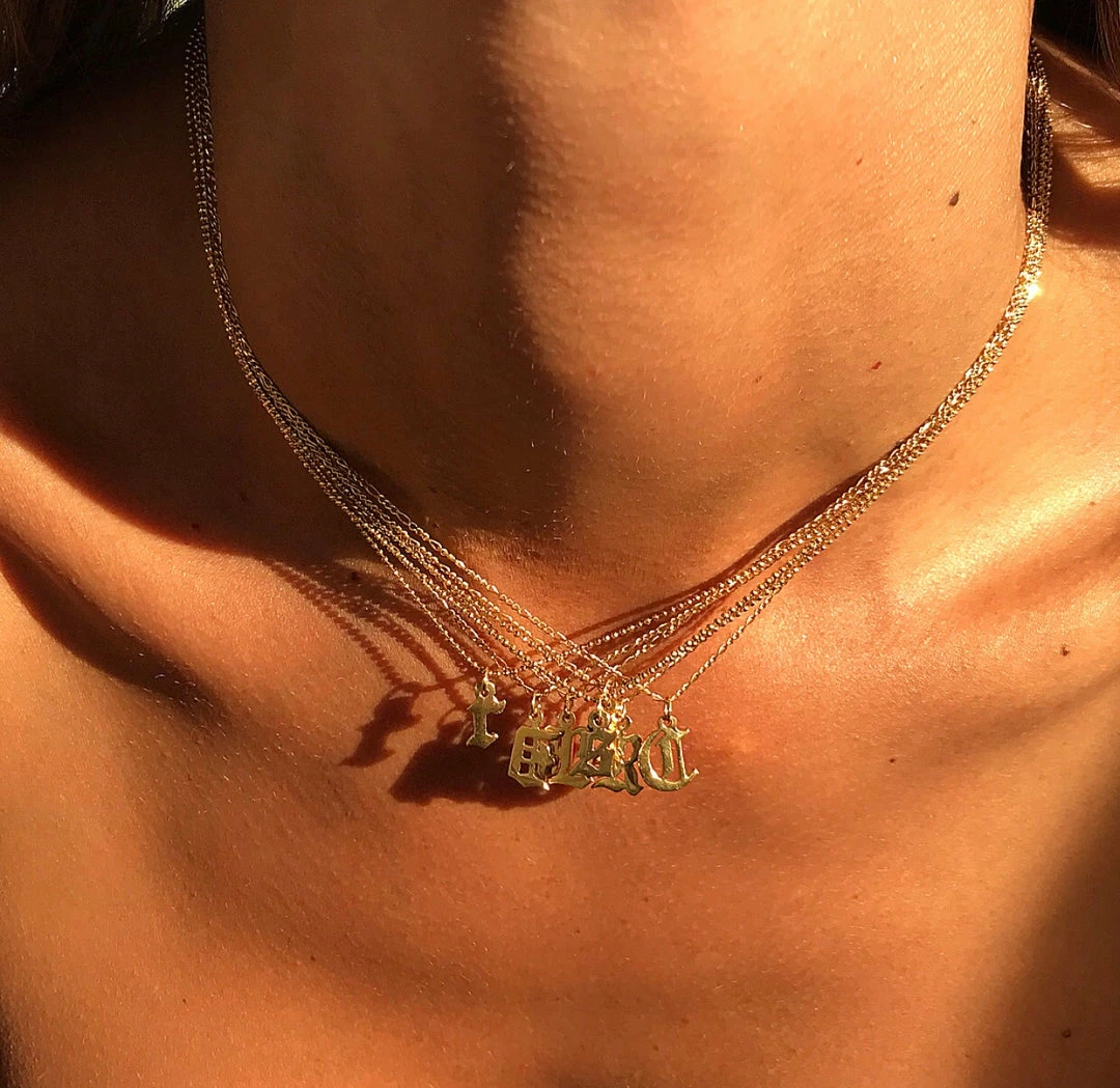 Dainty yet bold little pendant. Mini old english or gothic letter pendant necklaces.