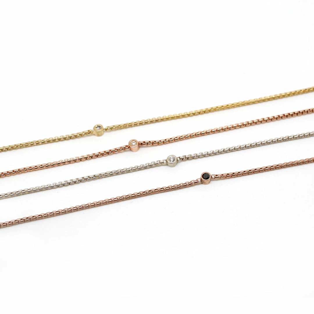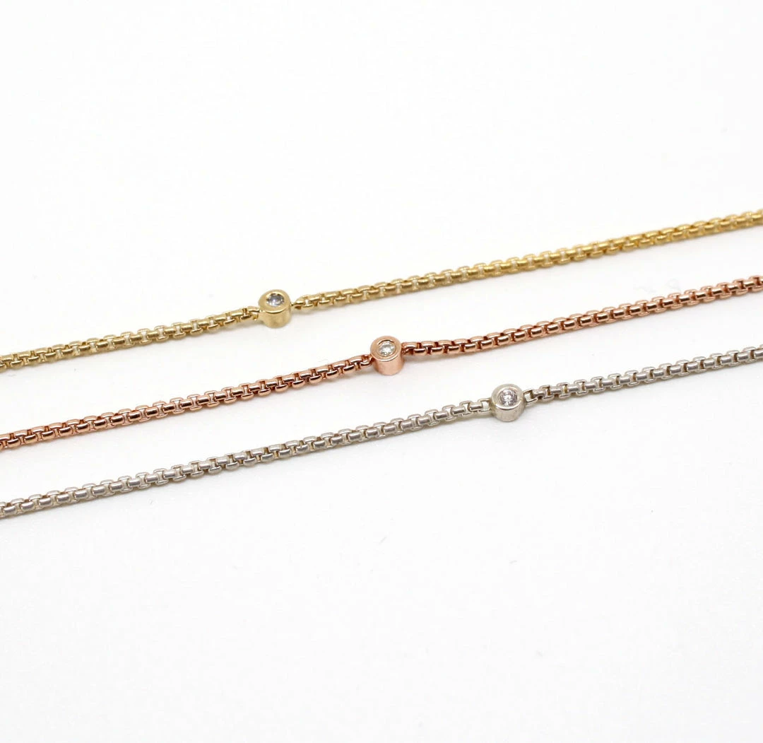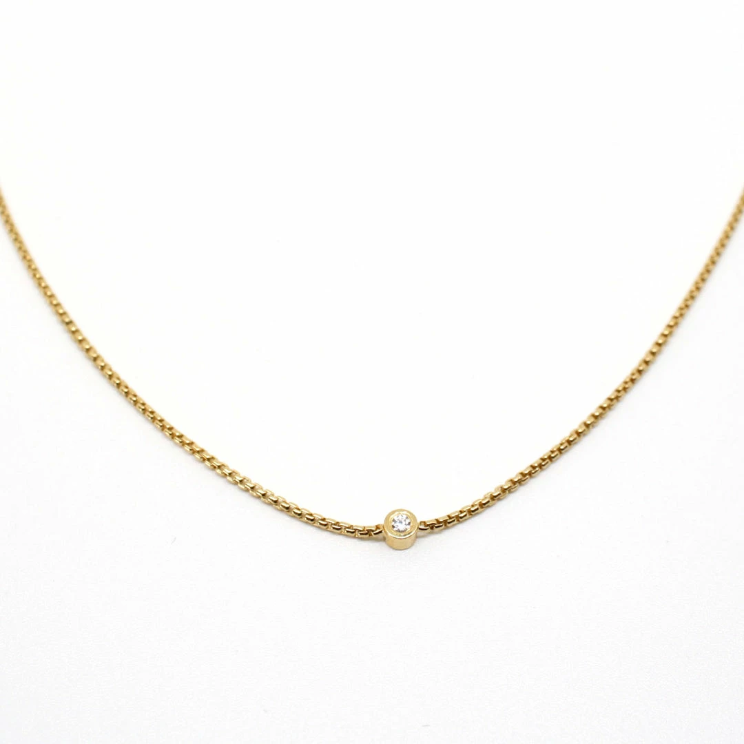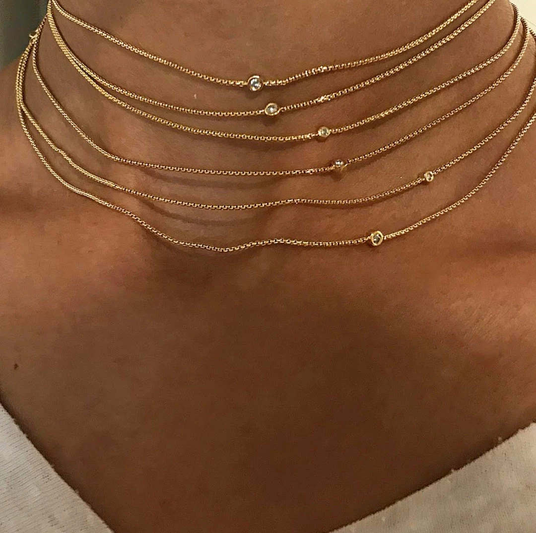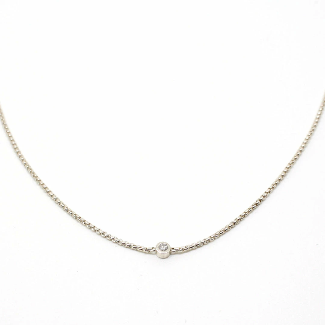 Delicate, dainty, calssic. A sweet diamond bezel neckalce. A traditional heirloom for the moderm chic women.