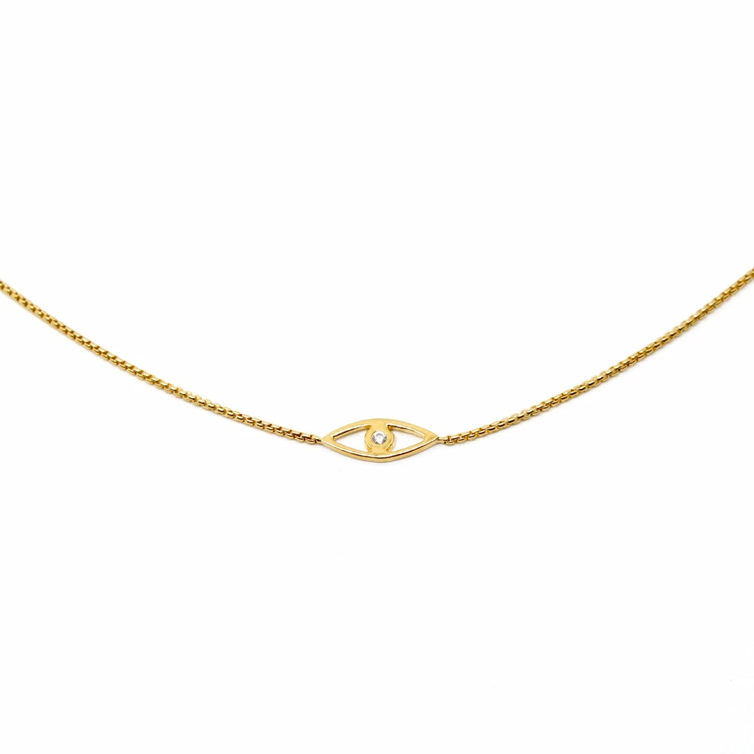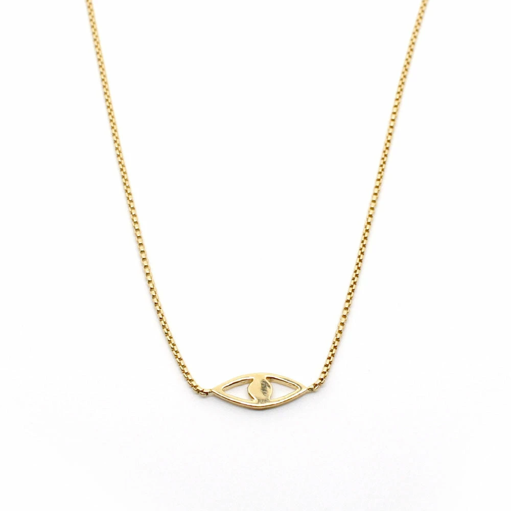 A traditional kind of heirloom. Evil eye also know as the third eye that aids protection. Dainty and classic perfect for layering. As seen on singer Madison Beer.