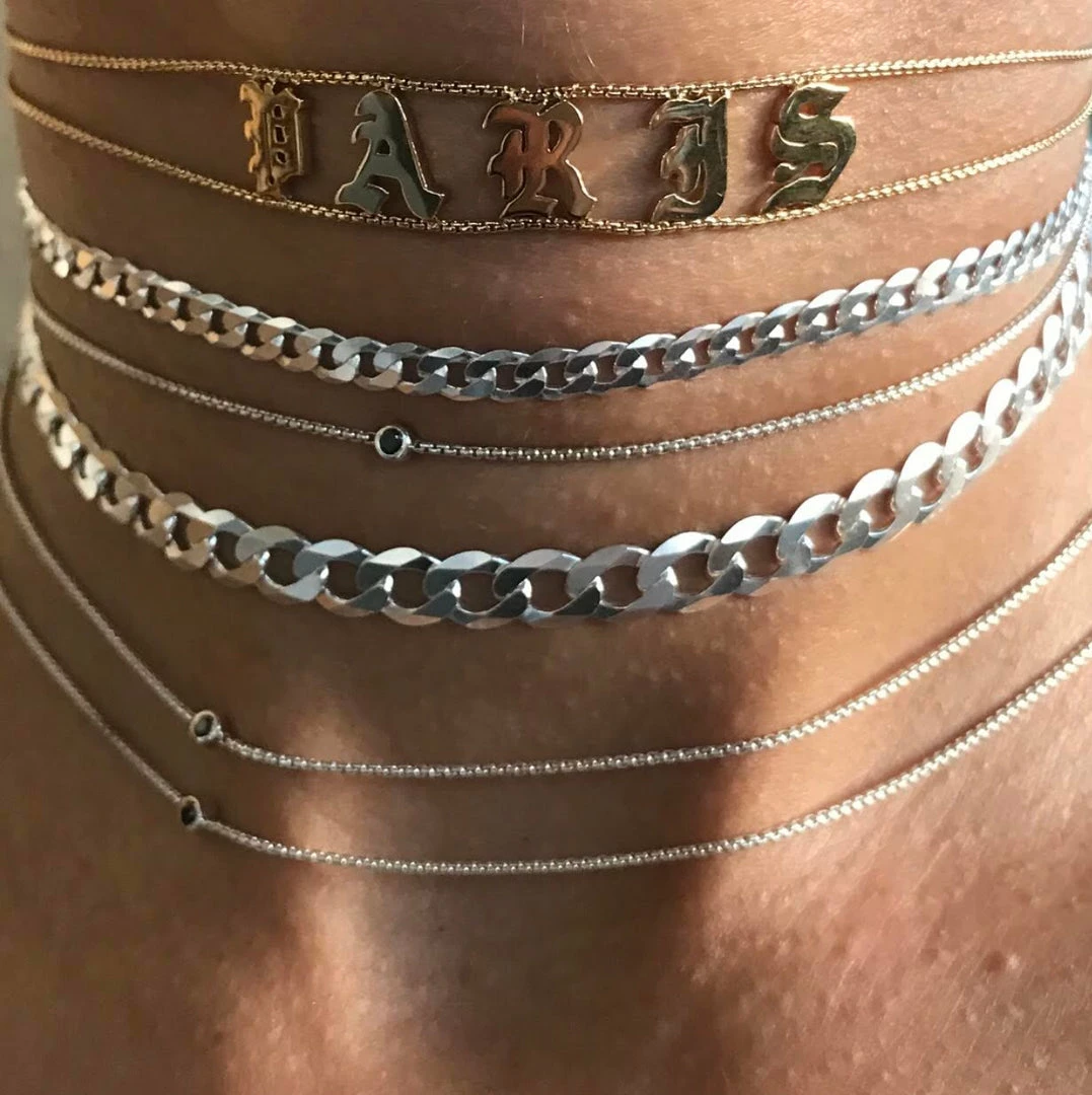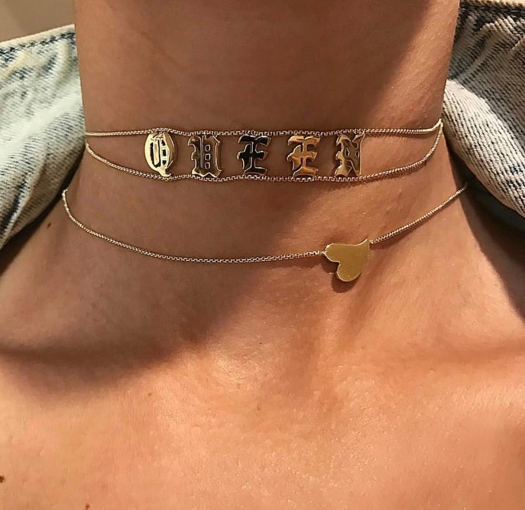 Custom nameplate dainty choker. Vermeil : Silver, Gold, Rose Gold. Items made out of sterling silver with option of plating. Original Madison Beer name choker.