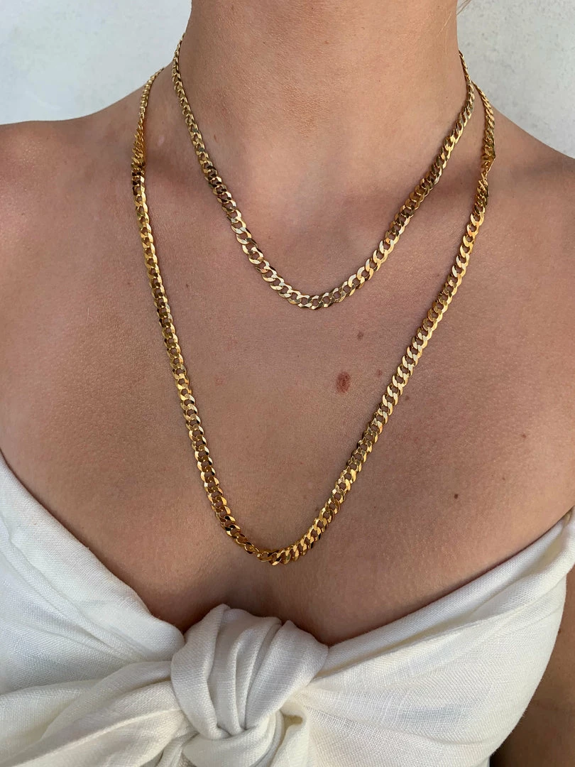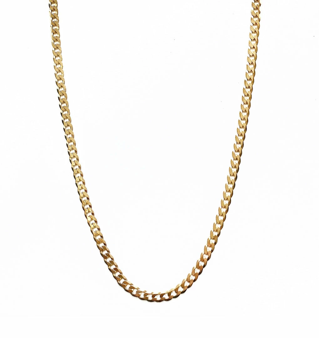 Classic single gold chain necklace. Thick curb chain. 4mm thickness. Choker 12 inches with 3 inches of extender chain. Long 22 inches