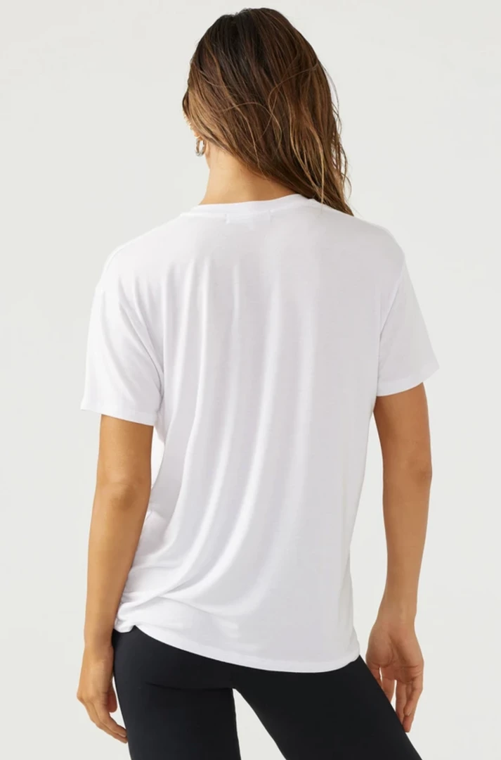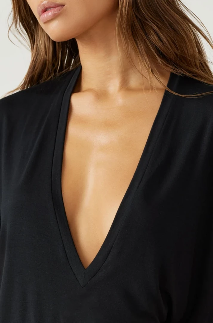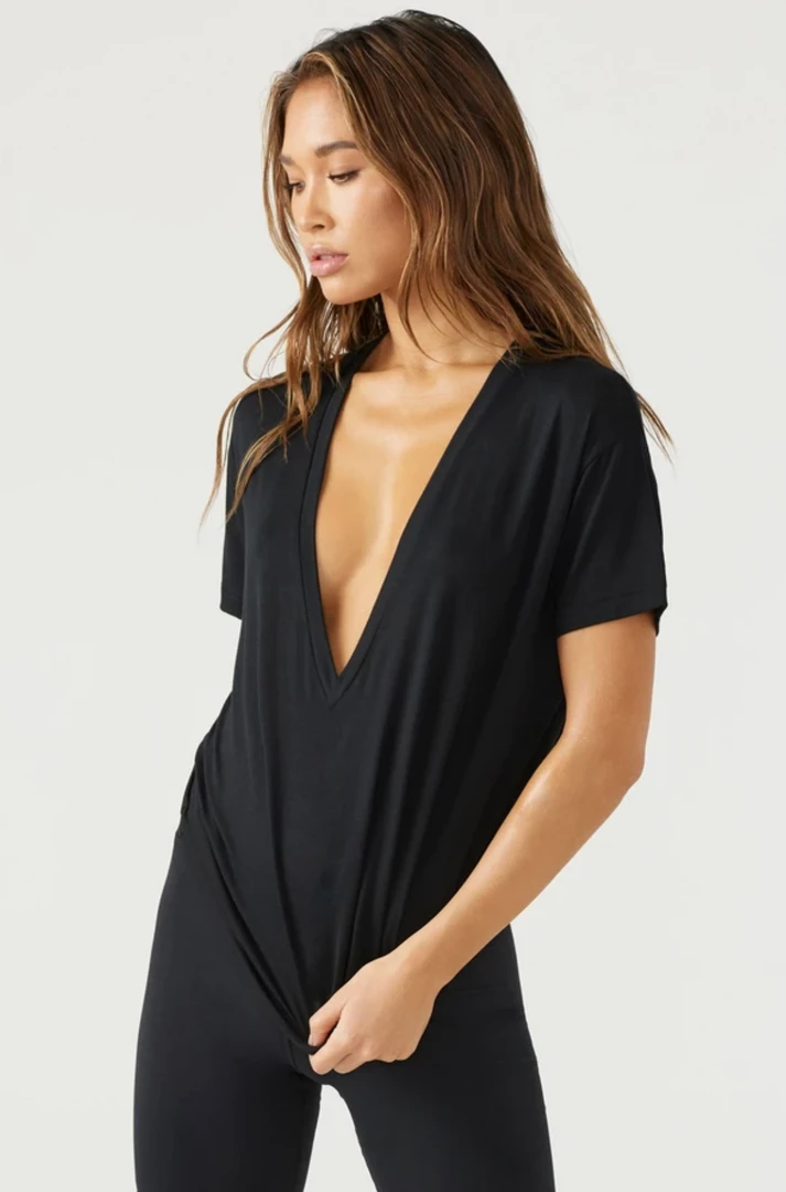 Lightweight, full length tee with a relaxed fit and a deep v-neckline.