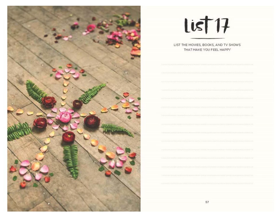Drawing on happiness research and her own personal philosophy, Moorea Seal creates an inspiring tool for list lovers everywhere to discover the keys to their own unique happiness and bring more joy and balance into their lives. This beautiful, undated hardcover journal with 52 listing prompts encourages readers to reflect, acknowledge, and invest in themselves, and ultimately transform their lives by figuring out exactly what makes them happy. Like The 52 Lists Project and 52 Lists for Calm this keepsake journal comes in a luxurious package full of lush photography, charming illustrations, copper foil, and a lush red velvet ribbon.