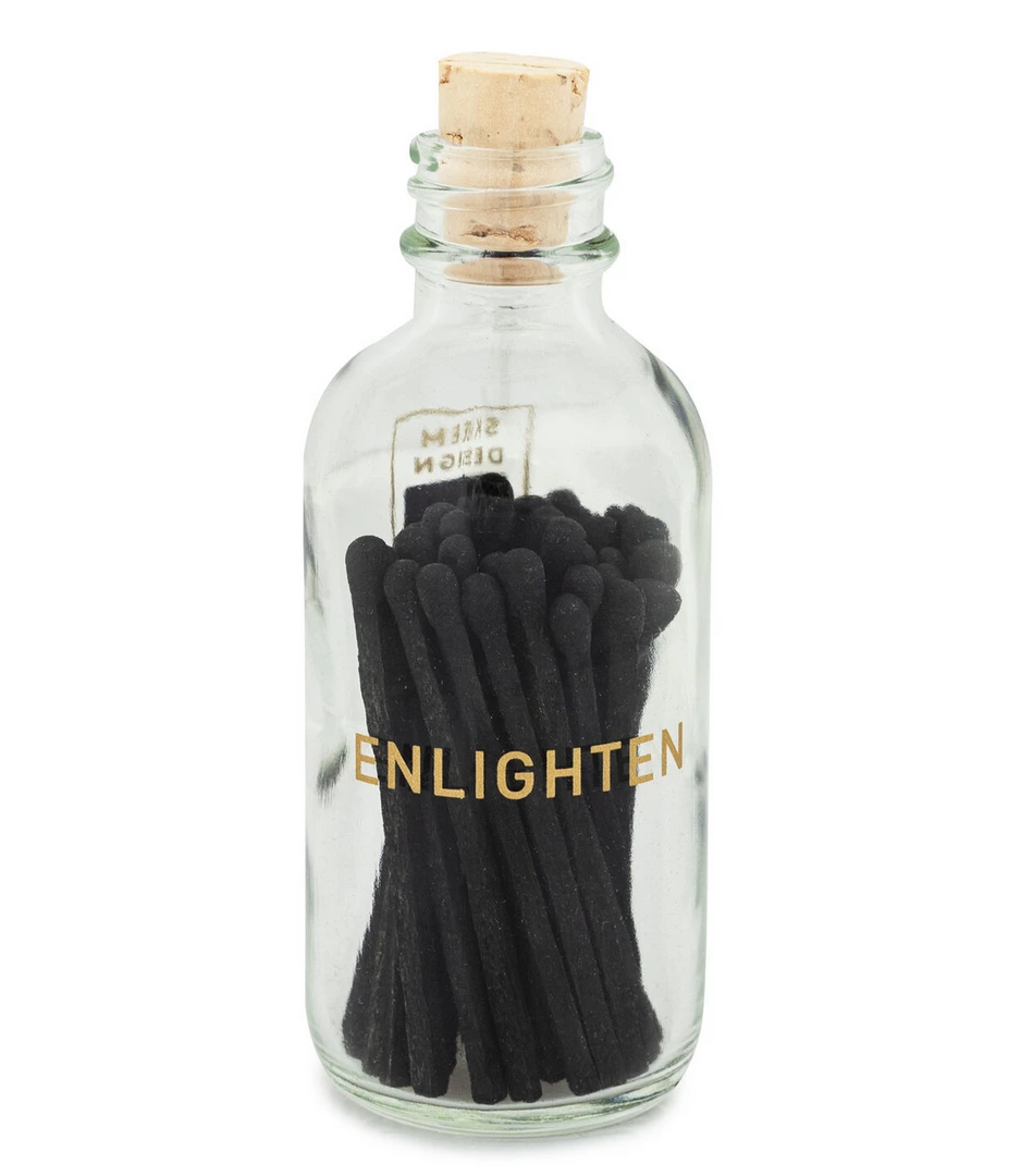 Our Luminary collection features inspiring words silk-screened in matte gold on glass apothecary bottles. Beautifully graphic with all-black matches providing the backdrop to luminous text.